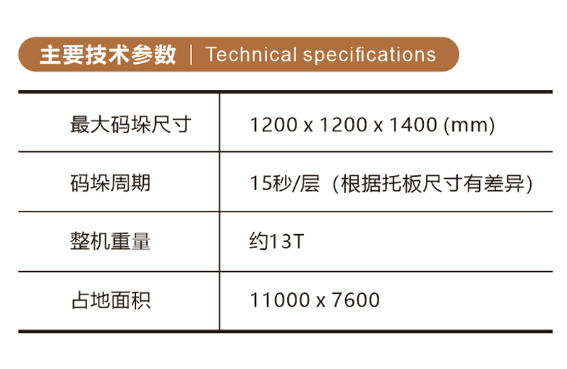 碼垛周期 15秒/層 (根據托板尺寸有差異,誤差在1-3秒)